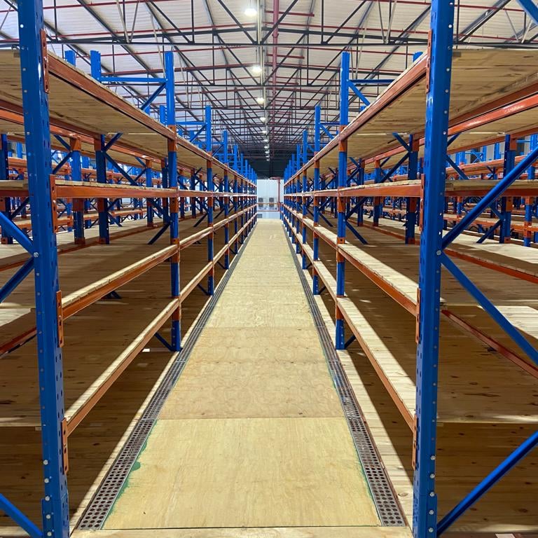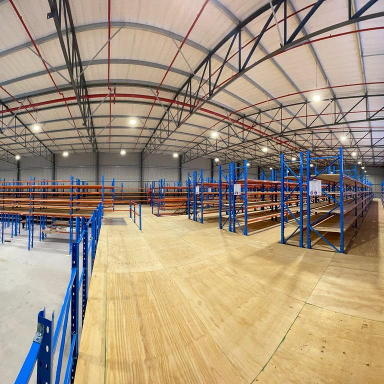 Successfully launched FOM's new 1,500-square-meter warehouse with a 9-meter height to eaves, a 900-square-meter storage mezzanine, storage boxes, pick trollies, purpose-built workstations, RFID scan chambers, a dedicated receiving and dispatch floor, and a load-shedding-friendly solution for moving cartons between mezzanine levels.
